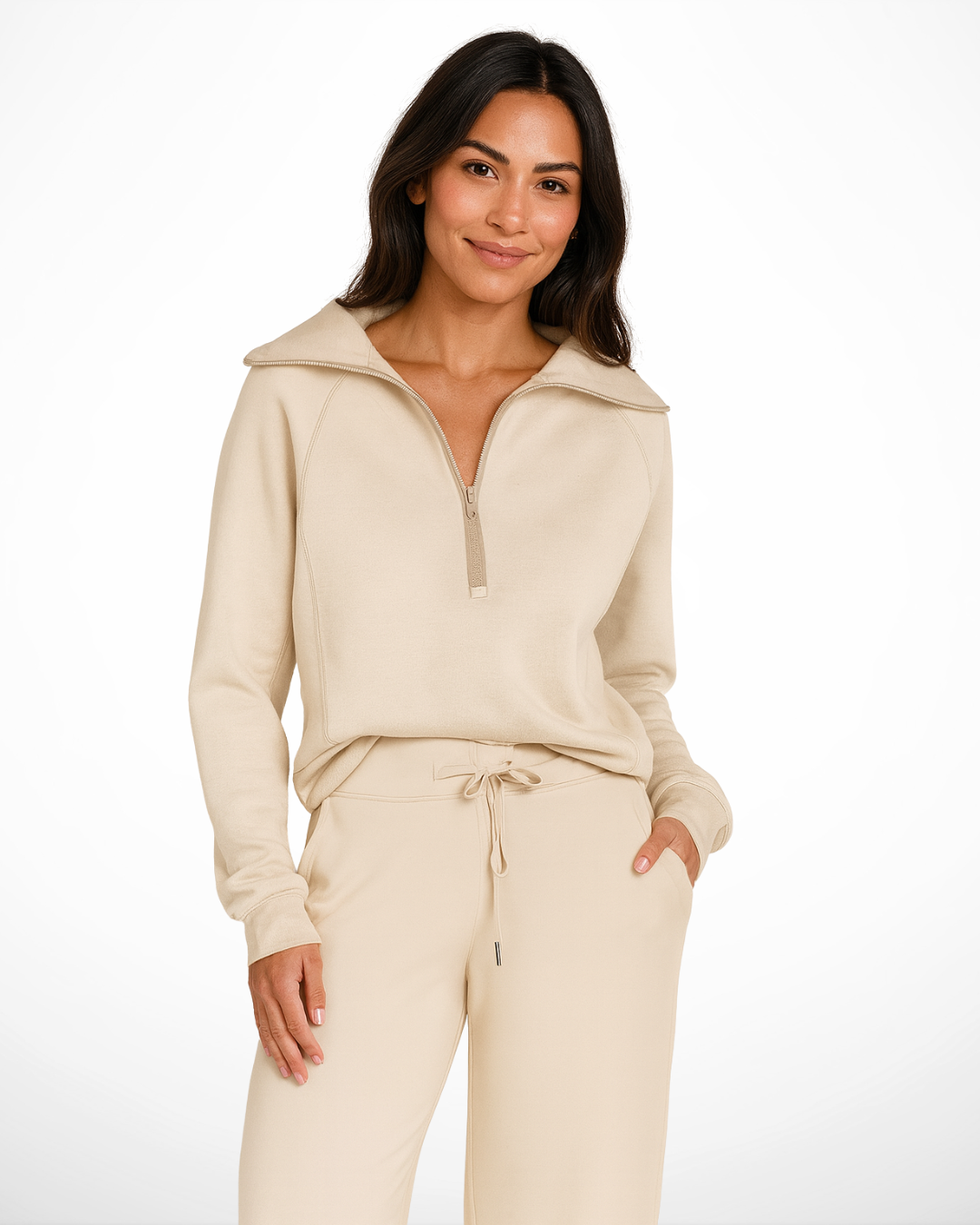 - Quarter-zip design