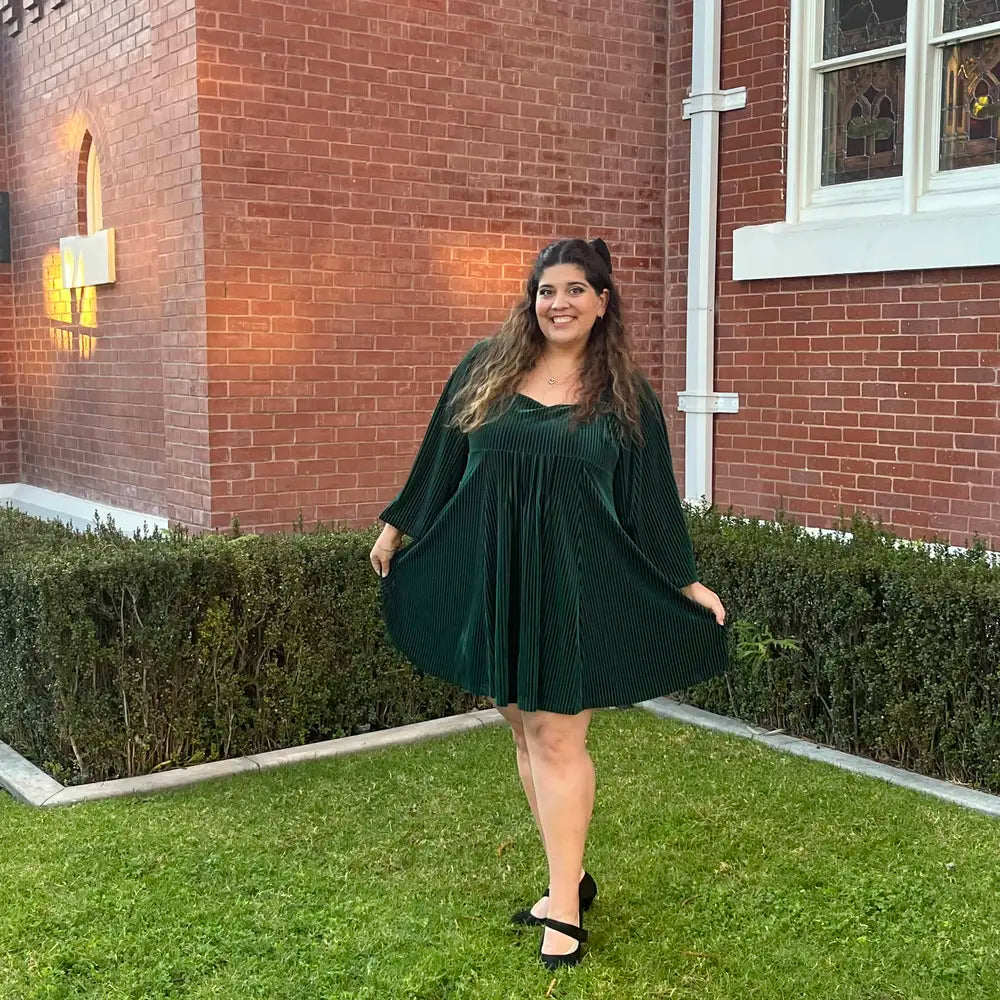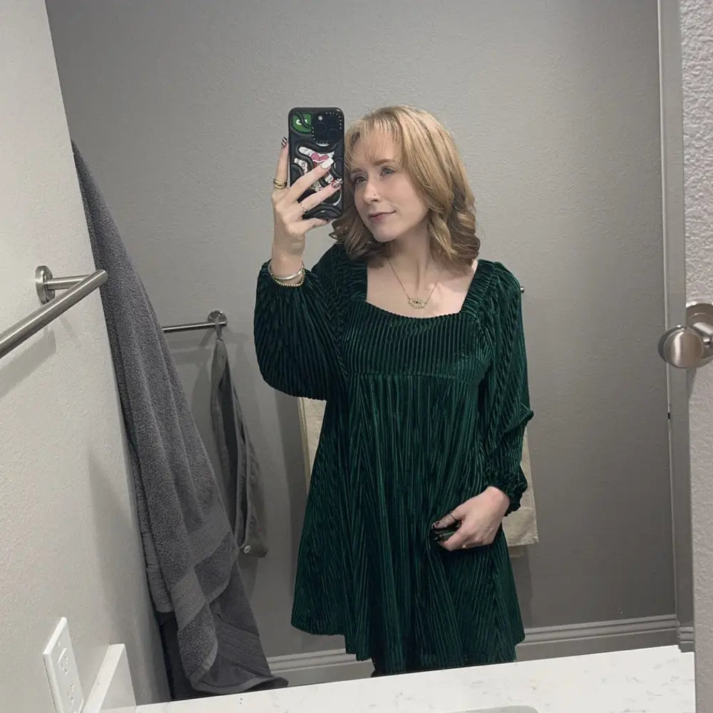 I got this dress for the holidays and I am in love. It is so comfy and is one of the only dresses that look good on me. Highly recommend!
