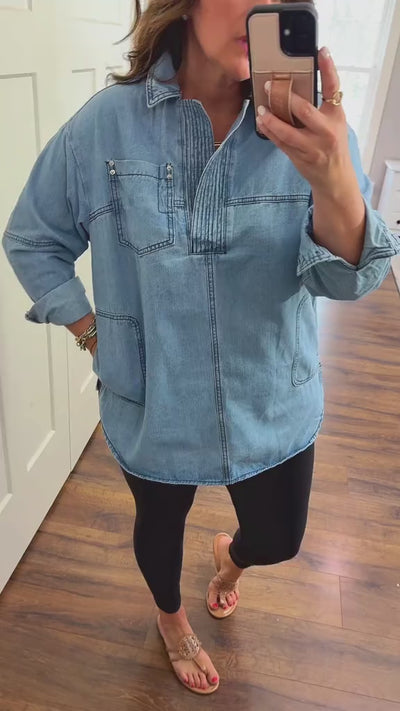 Comfi is built on one idea: comfort should never mean losing style. This pullover pairs a soft, denim twill with a relaxed fit for those laid back styles. A piece you’ll reach for season after season.
