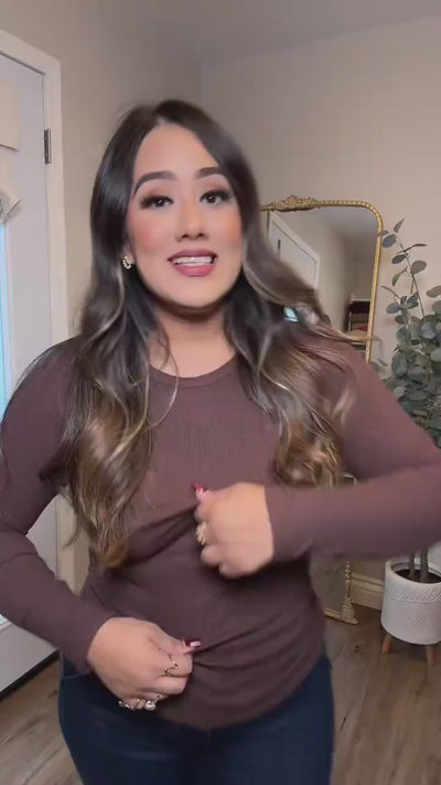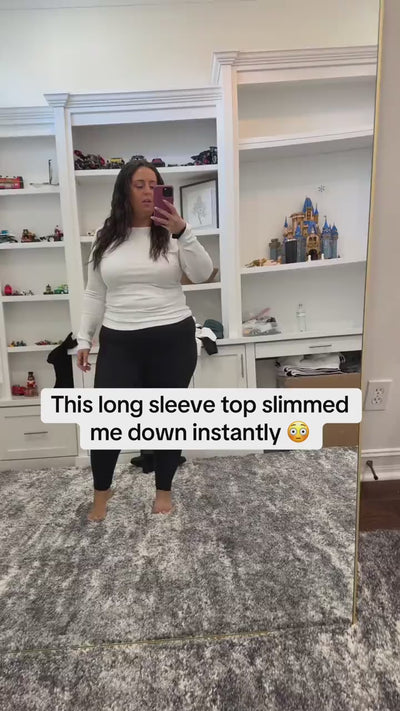 This ribbed long sleeve gives you that effortless, “I look amazing today” confidence with a fabric that smooths, flatters, and lightly contours your waist without ever feeling tight or restrictive.
